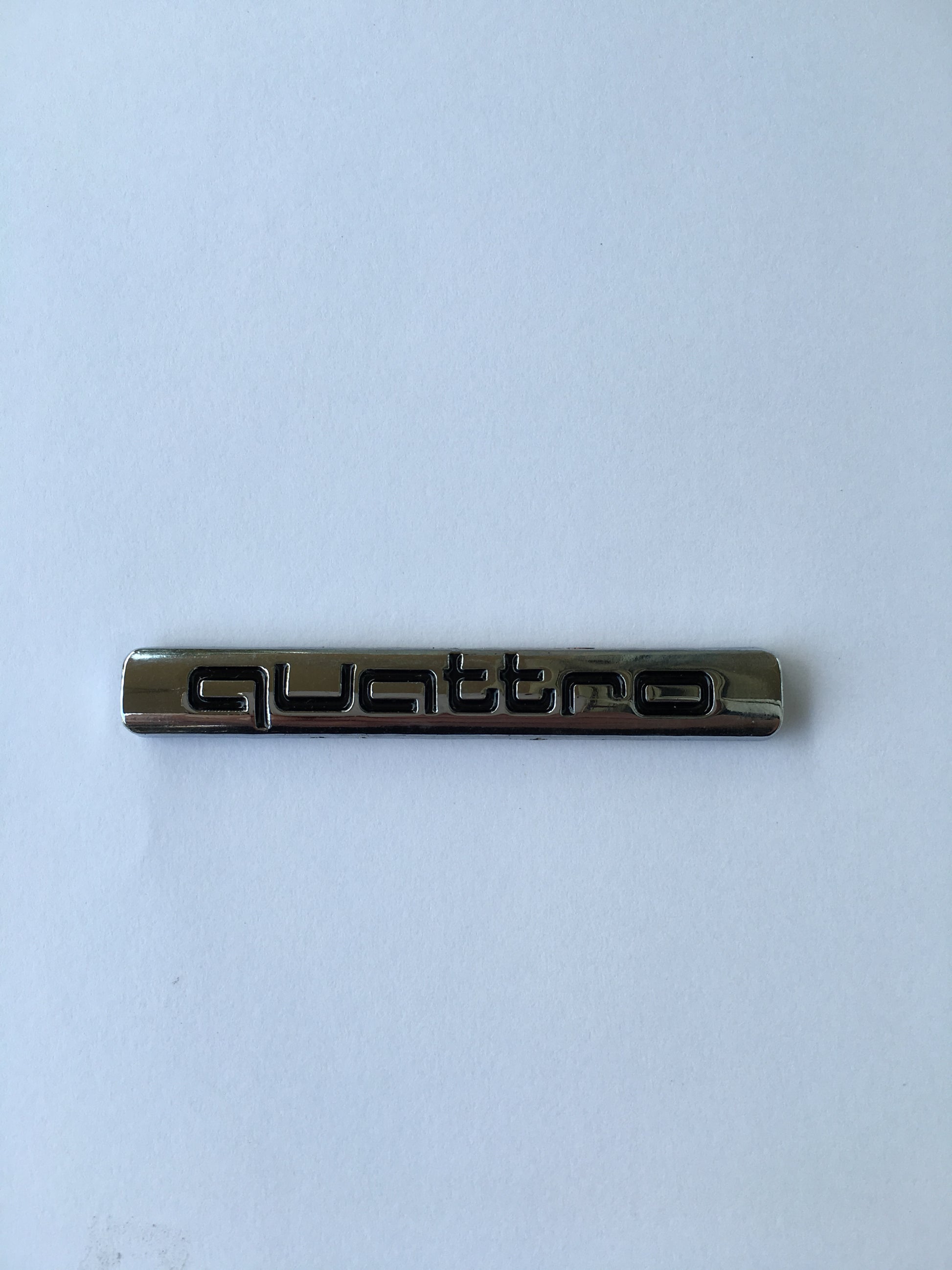 Audihoz Quattro embléma (jelzés, logó, felirat, márkajelzés) fényes ezüst (króm) színben.