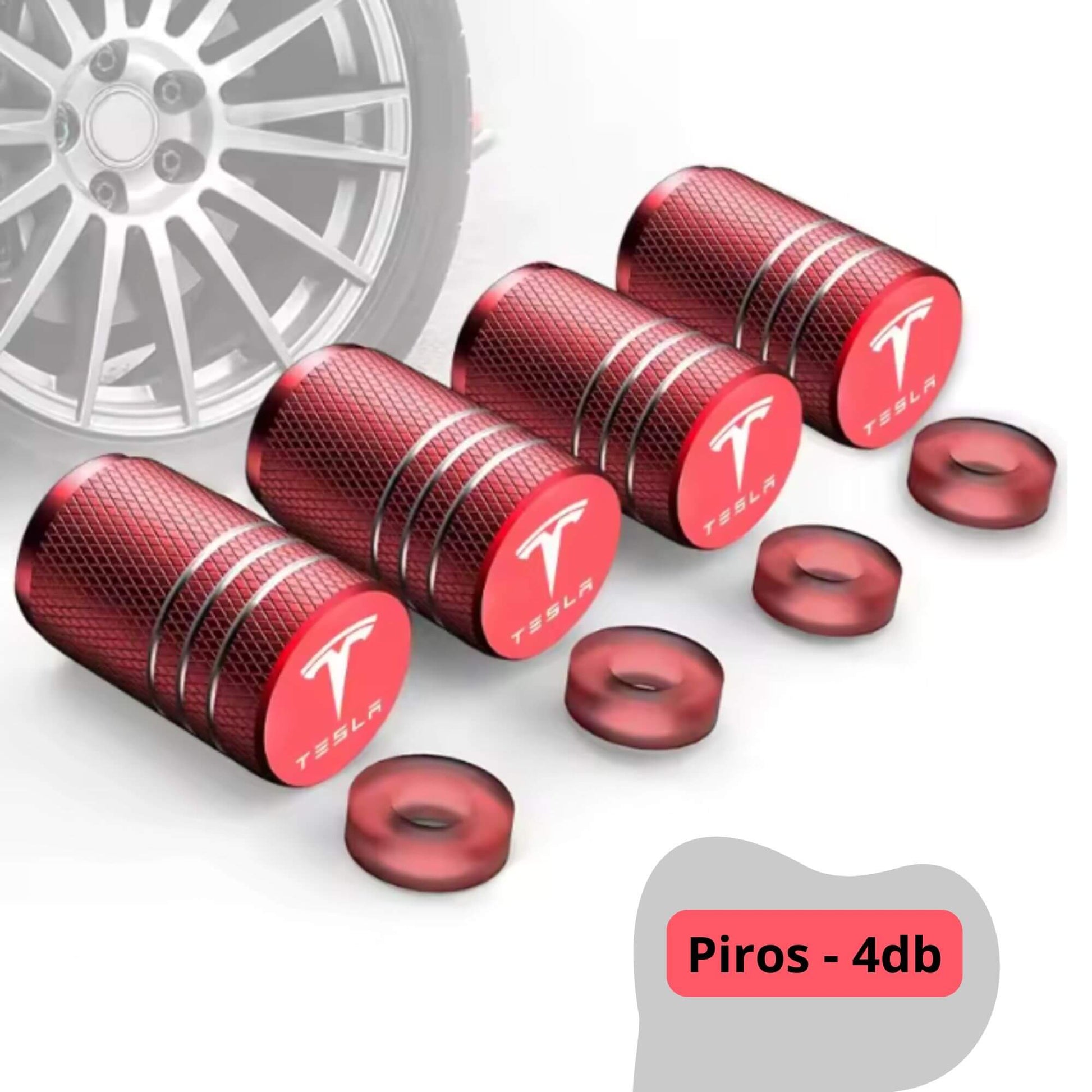 Tesla fém szelepsapka szett - piros – 4 db (Model 3, Y, S, X, Roadster, Cybertruck)