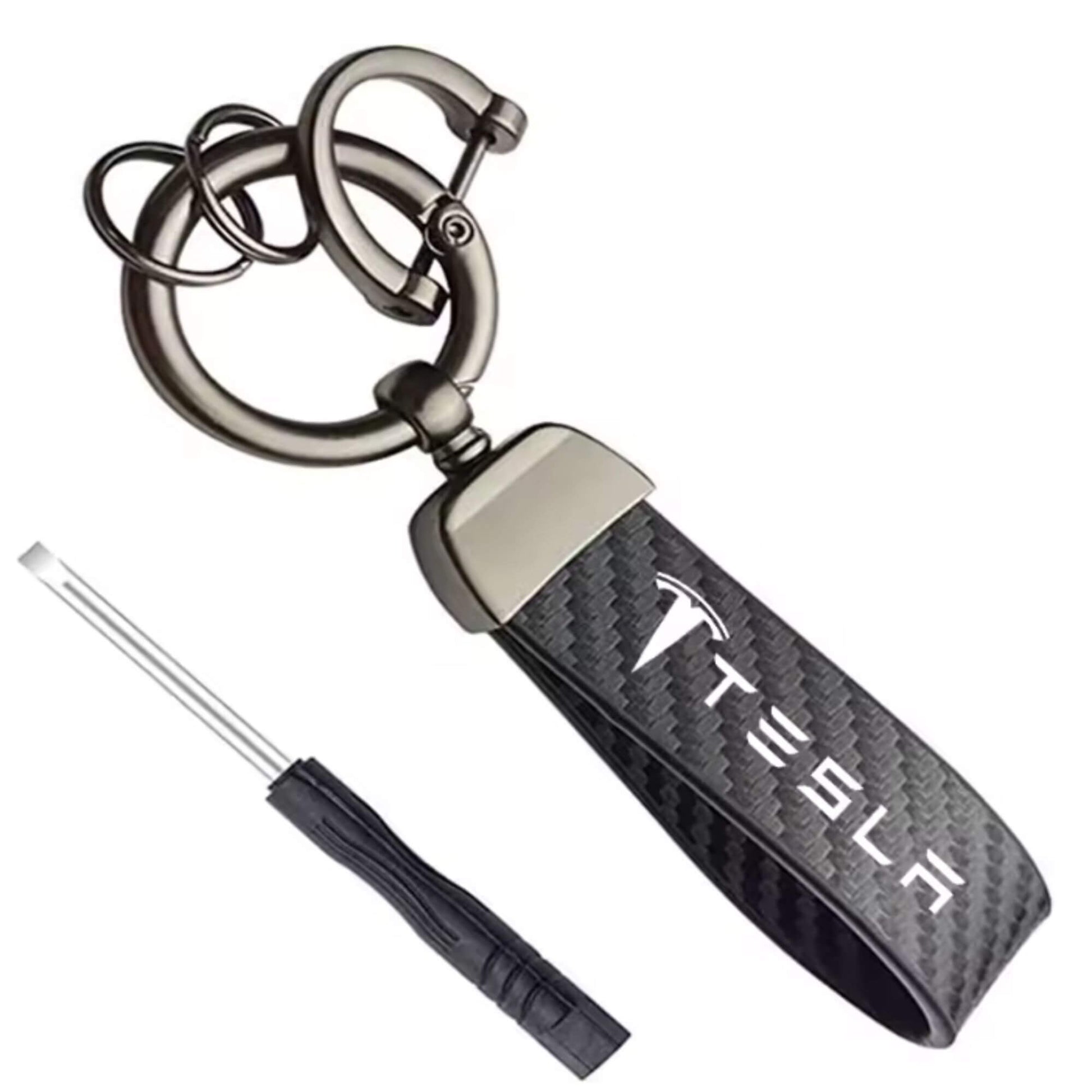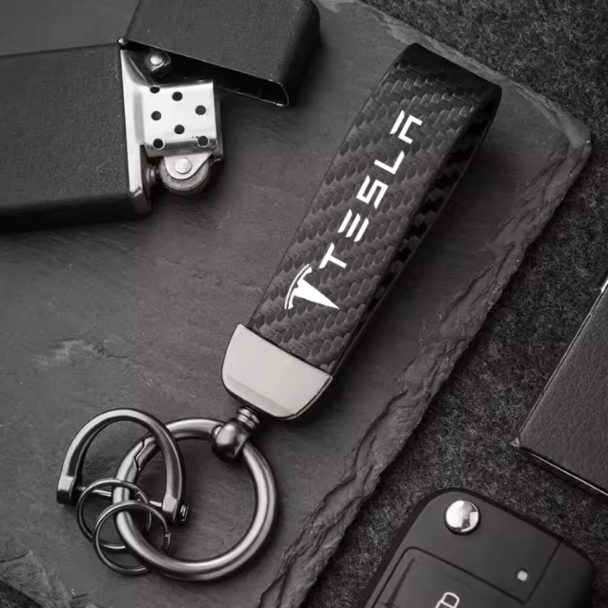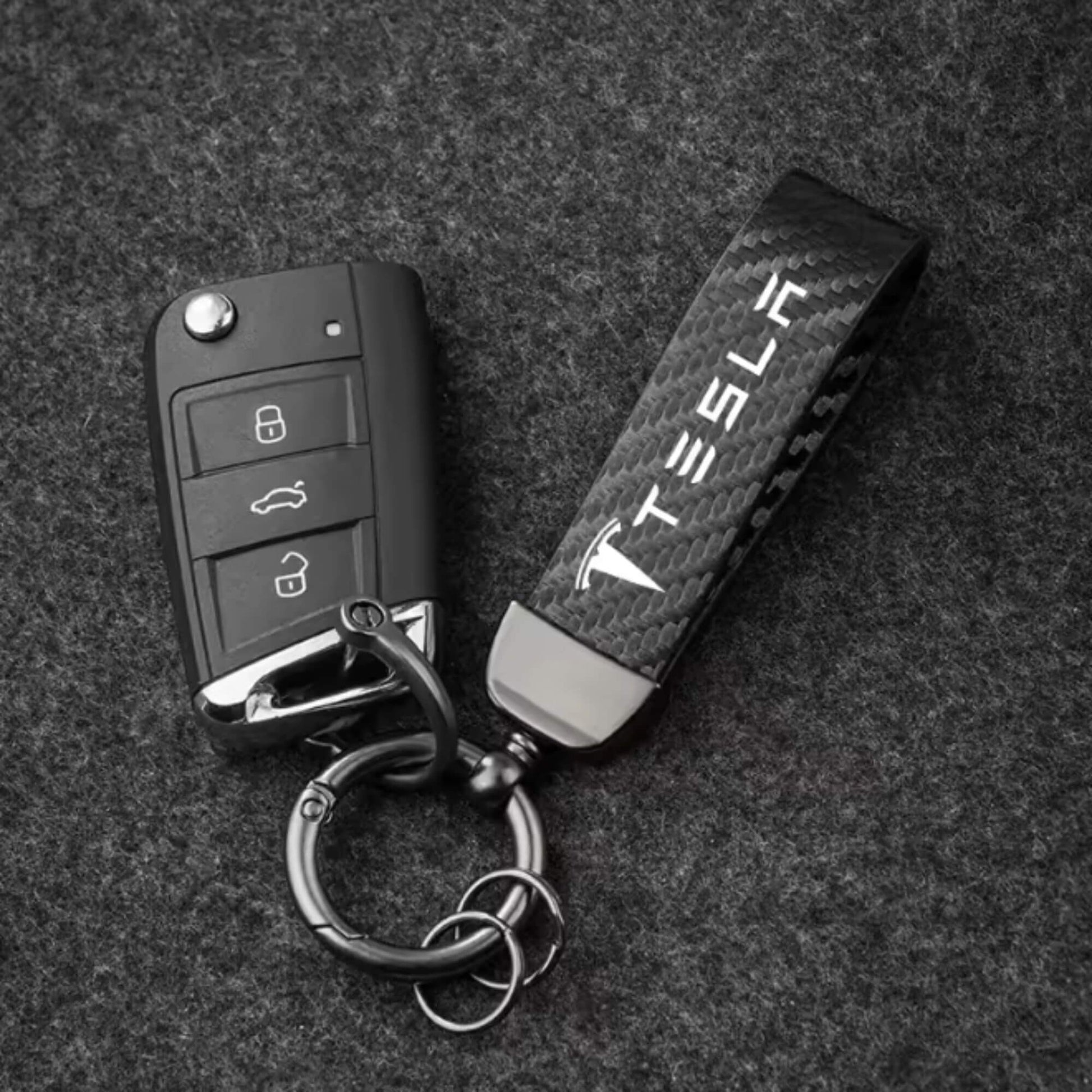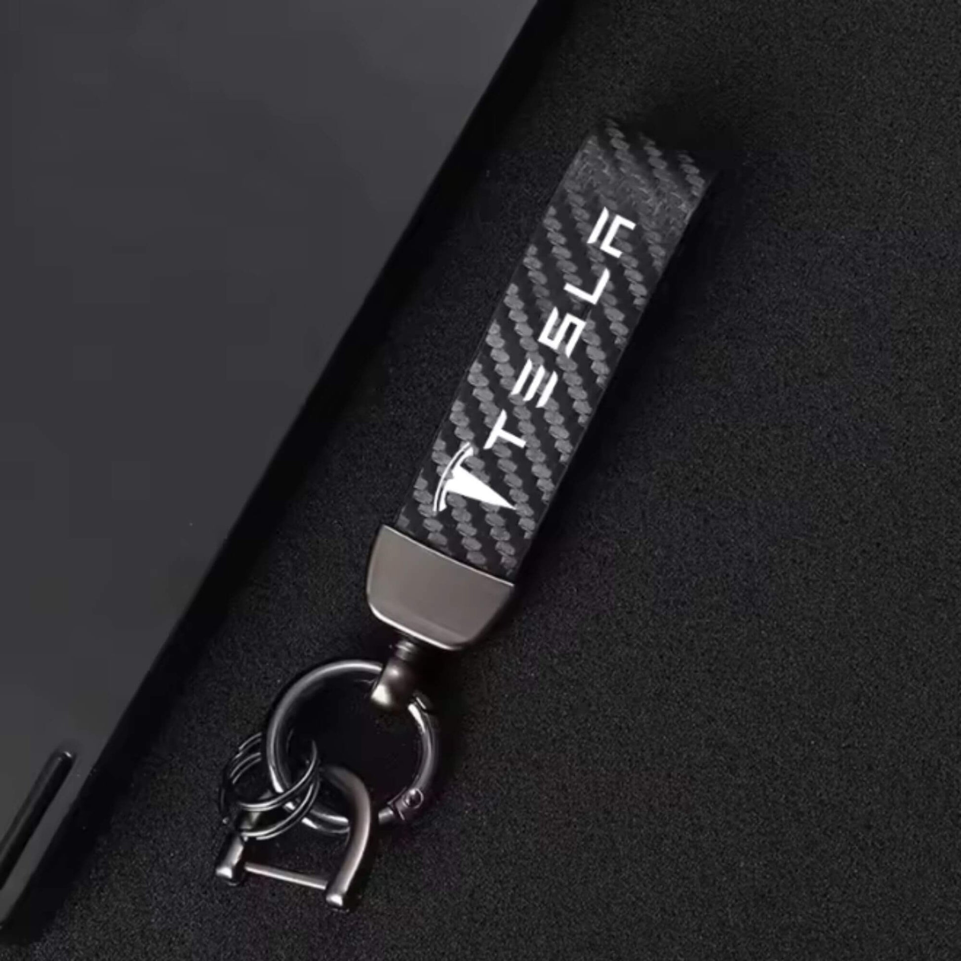 Tesla kulcstartó – karbon mintás bőr (Model 3, S, X, Y)