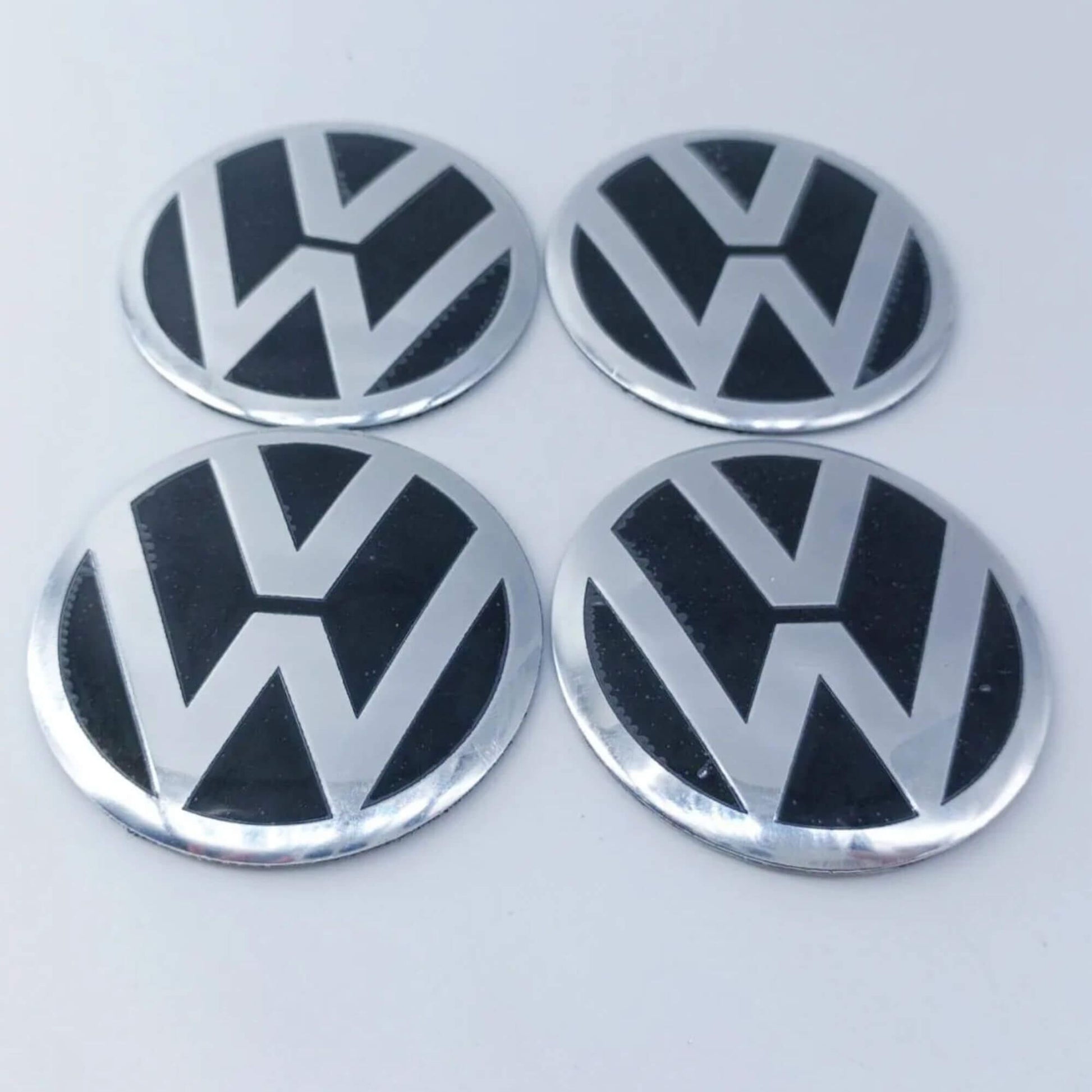 ✅ A megoldás: VW öntapadós matrica (65 mm, króm–fekete)